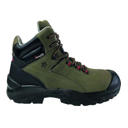 Calzado de seguridad fabricado en cuero Nobuck verde con proceso de inyección directa al corte.